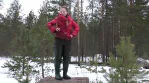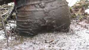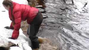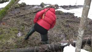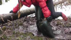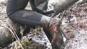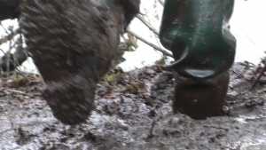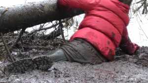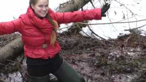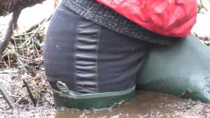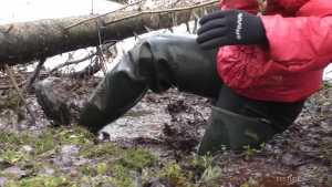 Watch Darina laugh and play in the thick mud pit wearing her favorite green waders.